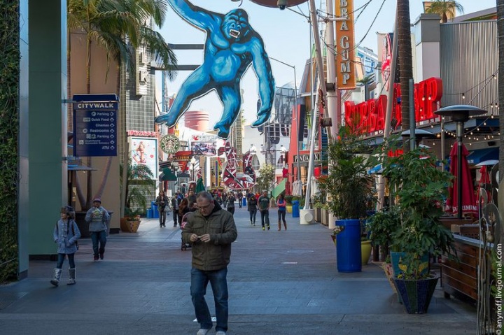 Наша прогулка стартует с City Walk — небольшой улочки, начинающийся при входе в парк. Да, развлечения и приятный променад традиционно предлагается начать с безумного количества разнообразных ресторанчиков, кафе и магазинов. Стараюсь проскочить этот участок поскорее.