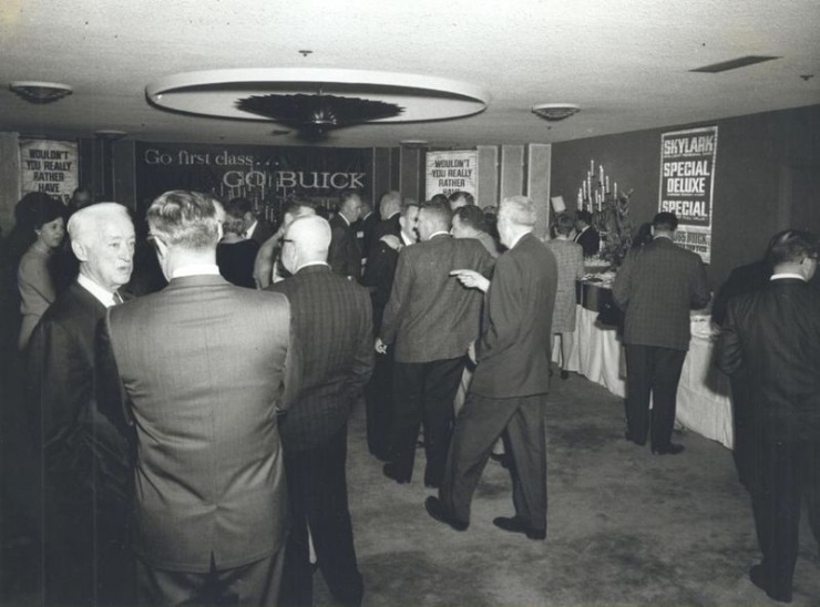 Развлечения способствовали наполняемости заведений в выходные. Чтобы заполнять отели в течение недели, в конце 50-ых там стали проводиться различные конвенции. На фото заседание Национальных автомобильных дилеров в «Sands».