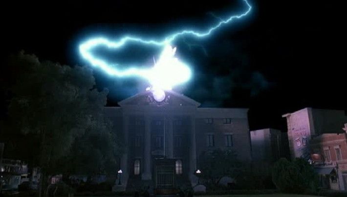 К слову, никакой молнии могло не быть вовсе. Первоначальная версия сценария предполагала, что необходимую для путешествия во времени энергию док и Марти найдут на ядерных испытаниях в пустыне Невада. Однако потом менеджеры подсчитали, что для подобных съемок всего лишь одного небольшого эпизода понадобится более миллиона долларов (около двух нынешних миллионов долларов с учетом инфляции).