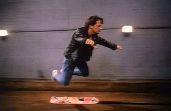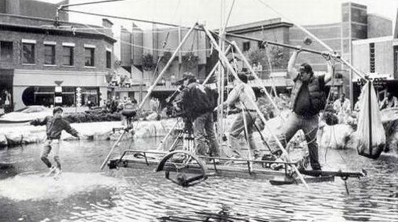 Кроме того, инженерам пришлось придумать сложную систему из ремней, крепившуюся на кране. К ремням подвешивали актеров, и те чуть ли не по-настоящему летали в воздухе. Больше всего зрителей впечатляли кадры, когда актеров показывали ниже колен, с парящими ховербордами и ногами на них. Чтобы снять эти эпизоды, к доскам намертво привинчивали обувь, героев фильма сажали на специальную установку и возили, пока все действо снимала камера.