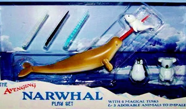 Игра “Месть нарвала”. Из описания на упаковке: “В комплект входит 4 магических клыка и 3 очаровательных зверюшки для протыкания”