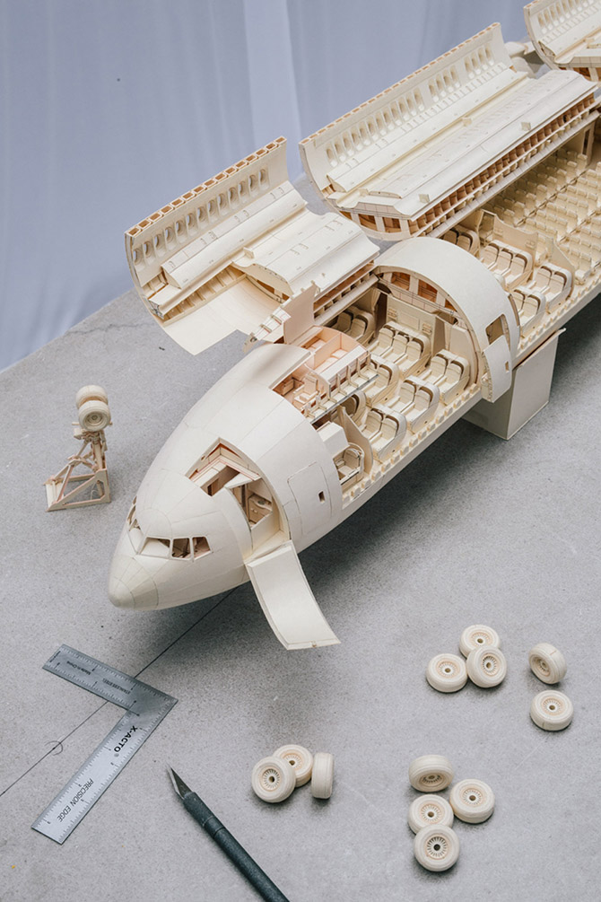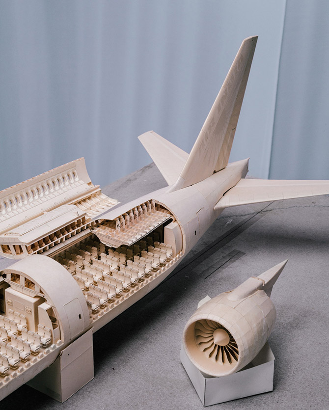 Однажды Лука Иакони-Стюарт, ученик старших классов, получил задание на уроке архитектуры. Ему нужно было сделать простые модели самолетов из бумаги, но эта идея так вдохновила его, что он решил сделать нечто более амбициозное. Он всегда интересовался самолетами, поэтому решил сделать из бумаги точную модель Боинга 777 в масштабе 1:60. Так он начал строить модель еще в школе, на проект ушло много бумаги и пять лет жизни, но он еще не завершен. Лука надеется закончить его летом, чтобы начать другой — есть идея создать новую, более крупную модель самолета.