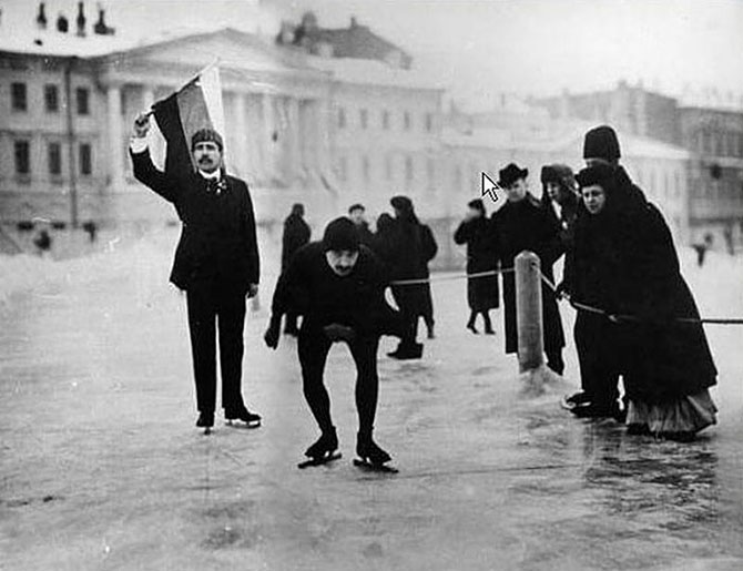 Первый в истории чемпионат мира по конькобежному спорту прошел в январе 1889 года в Амстердаме, а чемпионом там стал… российский конькобежец Александр Паншин (на фото). Считается, что именно он придумал беговые коньки – убрал мешающий завиток, удлинил лезвие, чтобы скорость была выше, и предложил использовать трубку, в которую впаивалось лезвие. Такими коньки для бега и остались на много лет вперед.