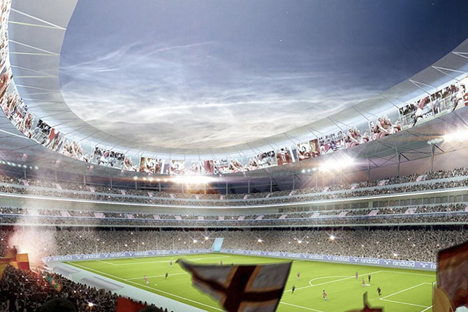 ЦСКА, Москва. Проект стадиона на 30 000 мест содержит план строительства небоскреба в форме Кубка УЕФА, первого европейского трофея, выигранного ЦСКА. По крайней мере, так было в чертежах 2007 года.