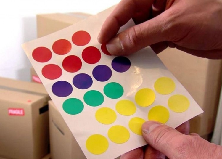 На коробках сделай пометки — для какой комнаты какая коробка предназначена. Можно сделать это при помощи наклеек разных цветов.