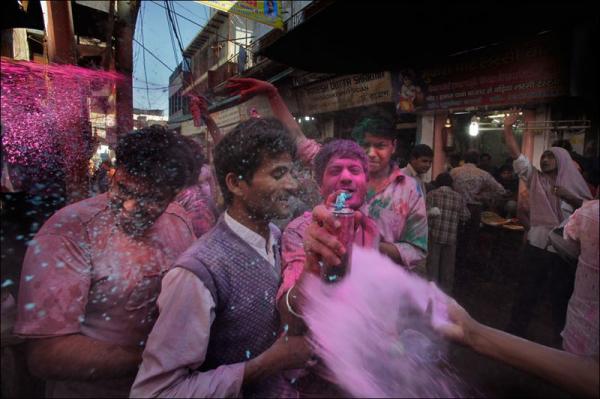 17. Во второй день представители всех каст и сословий, мужчины и женщины, старики и дети посыпают друг друга цветным порошком и обливают друг друга подкрашенной водой. (AFP / Getty Images / Deshakalyan Chowdhury)