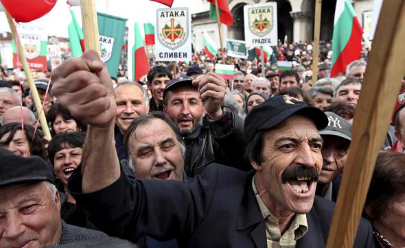 Сторонники политической партии Болгарии «Атака национального союза» празднуют День Болгарии в Софии. Этот день символизирует независимость Болгарии от турецкого правления. (Oleg Popov/Reuters)
