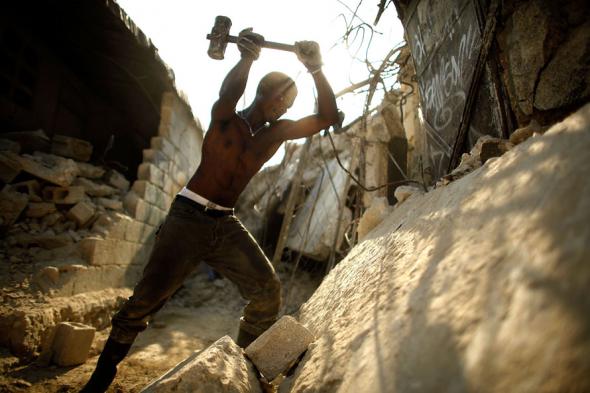 Молодой гаитянин разбивает молотом руины магазина в Гранд Рю – одном из старейших деловых районов Порт-о-Пренса. Гаитяне продолжают раскапывать руины, оставшиеся после 7-бального землетрясения. Накануне из-под обломков этого магазина вытащили тела двух детей. (Photo by Chip Somodevilla/Getty Images)
