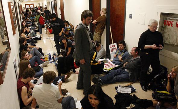 Студенты в Лос-Анджелесе проводят сидячую забастовку у кабинета ректора университета Калифорнии. Организаторы акций протеста провозгласили 4 марта «Днем действия» (Day of Action). (Luis Sinco)