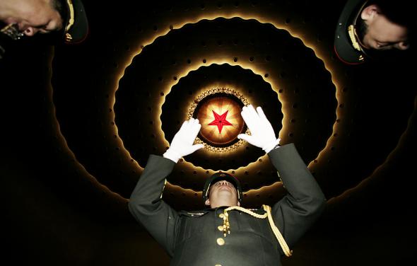 Дирижер военного оркестра проводит репетицию перед открытием Народного политического консультативного совета Китая в Пекине. (Jason Lee/Reuters)