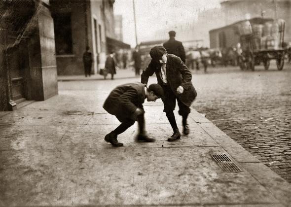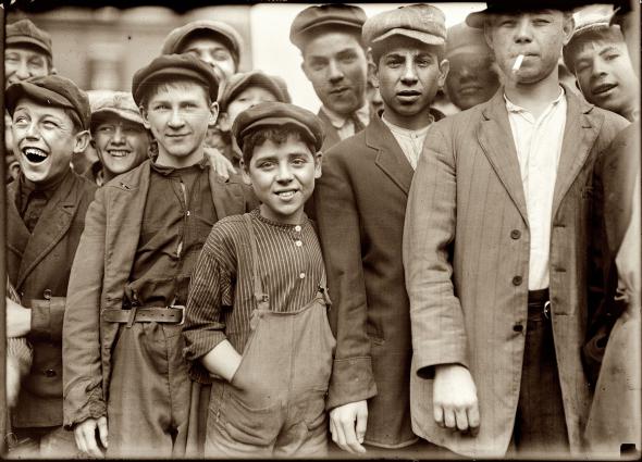 В начале XX века Льюис Хайн (Lewis Hine, 1874-1940) работал учителем ботаники в еврейско-славянском гетто Нью-Йорка. Фотографировать он начал в 1905 году. Первые его снимки рассказывали о судьбе иммигрантов непрерывным потоком вливавшихся в США, показывали их нищету, растерянность, и несбыточную надежду на лучшее будущее — если не для себя, то хотя бы для своих детей. Его работы были проникнуты гуманистическим пафосом, и новые журналы, ведущие борьбу за скорейшее проведение социального законодательства, охотно их печатали. Вдохновленный успехом Хайн ушел из школы и стал профессиональным фотографом.