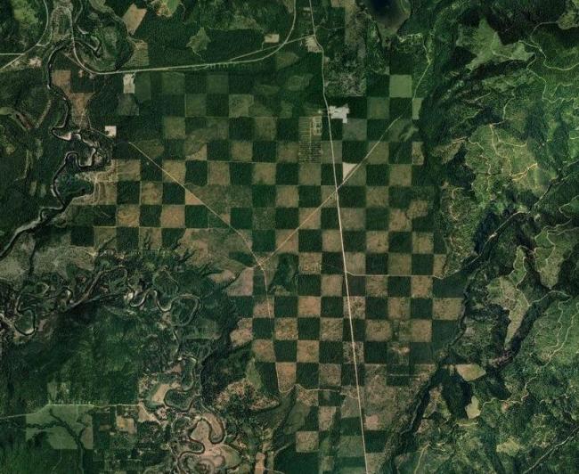 Google mapШахматная доска В северном Айдахо есть идеальное место для игры в крупнейшие в мире шахматы. На самом деле эта огромная шахматная доска является творением рук человеческих. Тем удивительнее видеть ее среди горной местности.