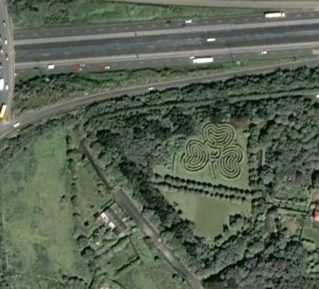 Google mapЛабиринт в Уилтшире В парке небольшого городка Уилтшира находится, может быть, самый причудливый лабиринт в форме гигантской ноги.