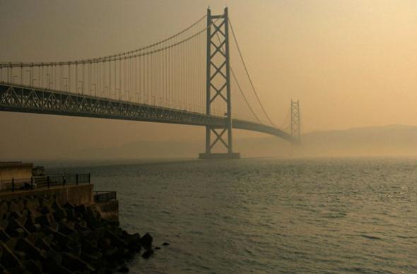 Самый грандиозный из ныне существующих мостоввысится возле Осаки. Японцы вновь переплюнули всех и создали настоящий мост в будущее. Возведение моста-монстра над проливом Акаси продолжалось с 1988 по 1998 годы. В течение этого времени строители в полной мере испытали на себе и бешеный напор тайфунов, и коварство морских течений, и разрушительную силу землетрясений, и предательскую податливость морского дна. На его строительство ушло 4,5 миллиарда долларов, но это стоило того — и двухкилометровый пролет между башнями-опорами, каждая из которых — высотой с Эйфелеву башню, и стальные канаты диаметром 1,12 м стоят того. Использованной для их изготовления проволоки достаточно, чтобы 7 раз обернуть Землю по экватору.