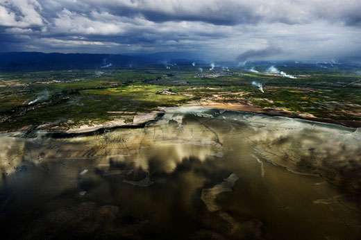 На фото: Сделанная с воздуха фотография, на которой по реке Бале (Baleh) на острове Борнео, Индонезия, плывет гигантская змея, вызвала панику среди местного населения, сообщает Daily Telegraph. Причиной для паники стало то обстоятельство, что в этом регионе широко распространена вера в существование чудовища по имени Набау (Nabau) - гигантской змеи-убийцы с головой дракона с семью ноздрями, которая может принимать облик других животных.