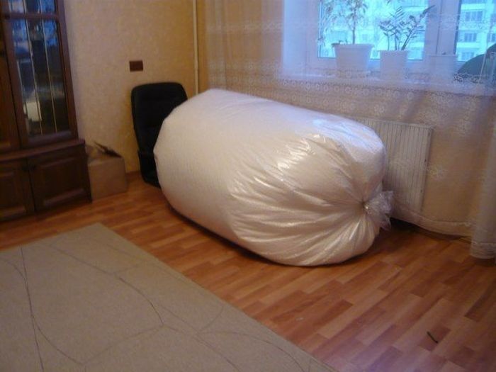 Как своими руками можно сделать бескаркасную мебель, а именно — кресло мешок. Бюджет на одно кресло 1100 рублей.