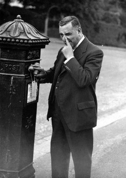 Глядя на снимок может показаться, будто человек, изображенный на нём, использует почтовый ящик в качестве урны. На самом деле это не так: на луковицах, которые мужчина опускает в прорезь, наклеены все необходимые марки — поэтому, согласно закону, овощи являются посылкой и должны быть доставлены адресату. Человек на фото — Реджинальд Брей — «головная боль» Английской почты.