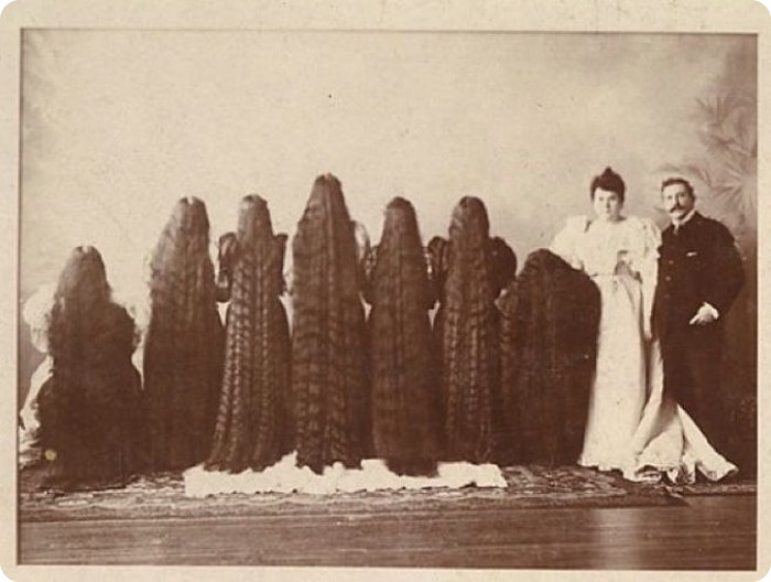 100-150 лет назад непременным атрибутом красавиц были длинные волосы, уложенные в элегантную прическу. Но прославиться на весь мир своими локонами удалось лишь сестрам Сазерленд, жившим в Локпорте (штат Нью-Йорк), общая длина волос всех семи сестер составляла 37 футов (более 11 метров).