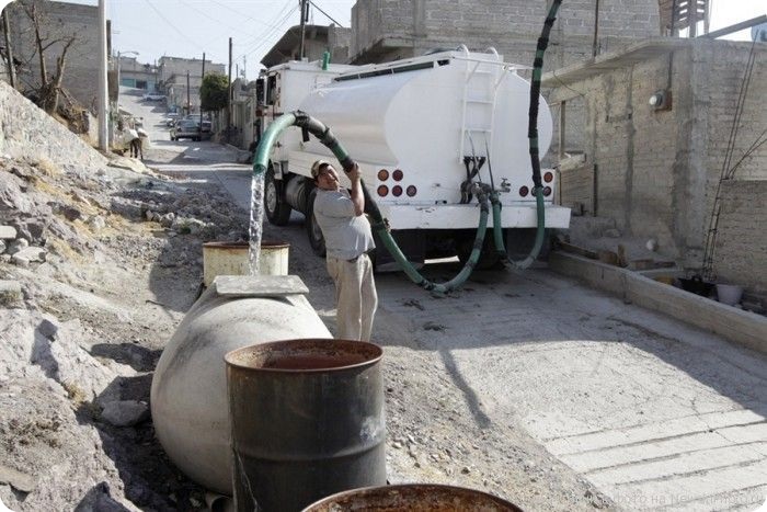 На окраине Мехико возле своего дома рабочий наполняет цистерну водой, 22 марта 2011 года. 22 марта каждый год по инициативе ООН проходит Всемирный день водных ресурсов. Целью этого мероприятия является привлечение внимания населения к той огромной роли, которую играет вода в окружающей среде, сельском хозяйстве, здоровье, торговле.