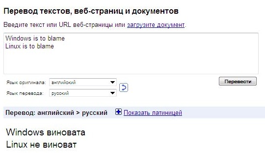 В переводчик Google вкралась ошибка: он не хотел ни в чем винить Обаму