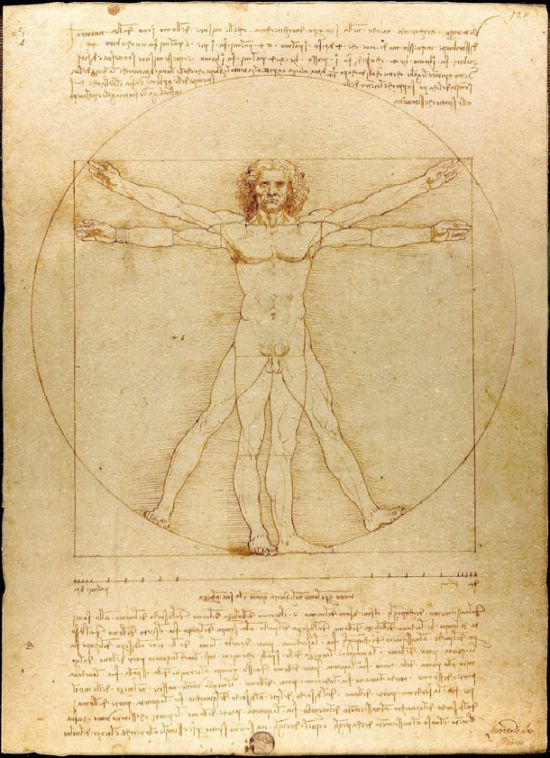 Витрувианский человек — рисунок, сделаный Леонардо Да Винчи примерно в 1490-92 годах, как иллюстрация для книги, посвященной трудам Витрувия. Рисунок сопровождается пояснительными надписями, в одном из его журналов… На нем изображена фигура обнаженного мужчины в двух наложенных одна на другую позициях: с разведенными в стороны руками, описывающими круг и квадрат.