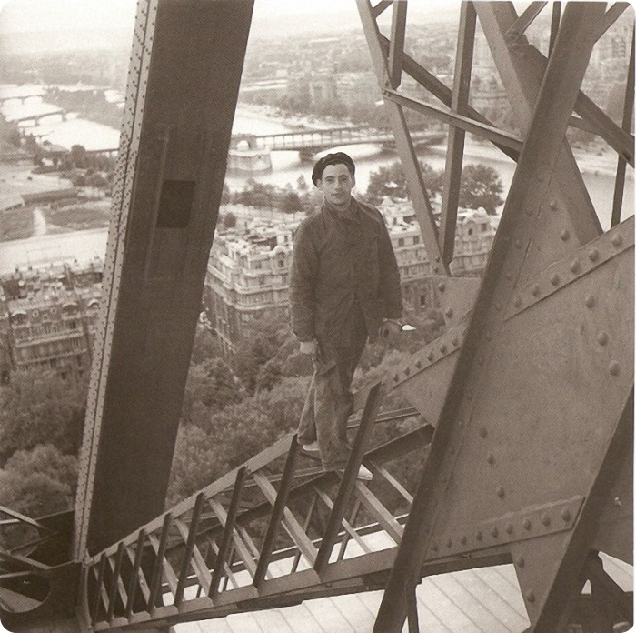 13. Головокружение. Бесстрашный рабочий принимается за приведение в порядок конструкции Эйфелевой башни. Последний этаж этой большой кокетки располагается на высоте 276 метров, прекрасный вид!