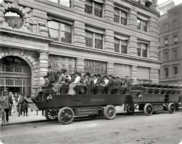 1904. Нью-Йорк. Экскурсионный электрический омнибус готов к отправлению.