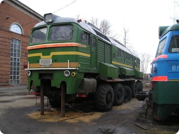 А это уже советская разработка. Тепловоз ДМ62 на колесном шасси. Создавался как тягач для транспортировки ракетных комплексов.