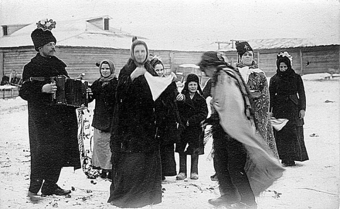 1914 г. На обороте фотографии надпись карандашом: «Сватъ Капитонъ за витьем веревки».