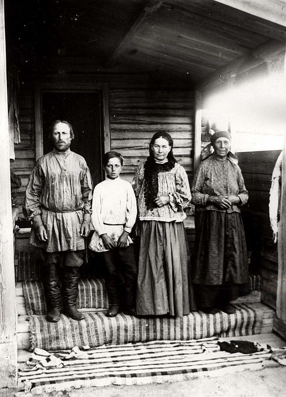 Крестьянская семья из д. Ярки Енисейского уезда в праздничный день на крыльце дома