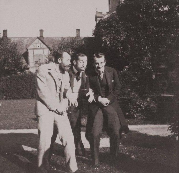 На фото: Император Николай II, принц греческий Николай, Виктория Мелита Великая герцогиня Гессенская и др.