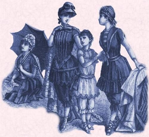 Seaside fashions for children and girls from La Mode Illustrée 1875.