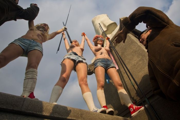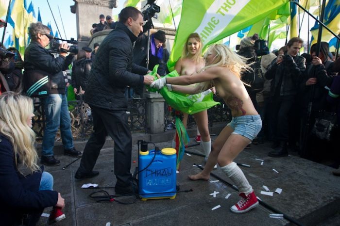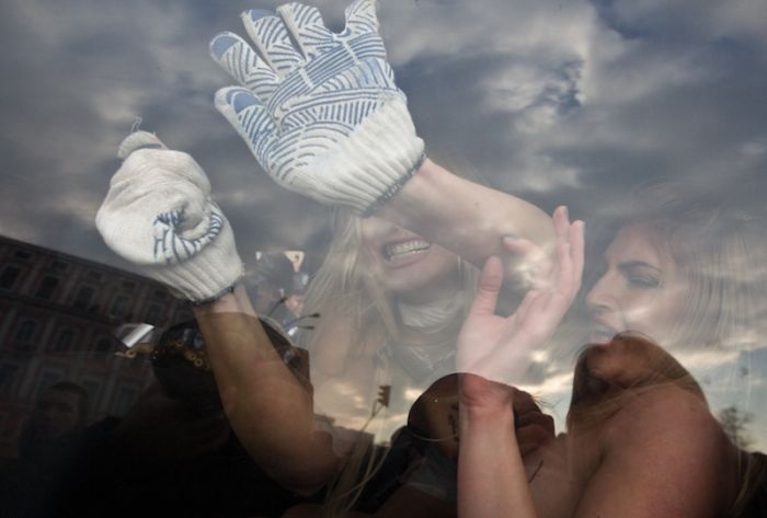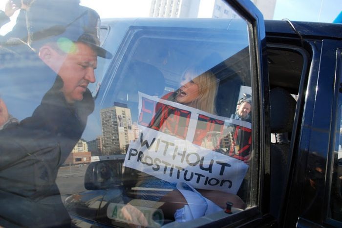 По окончании акции активистки были бесцеремонно заломаны милицией и отправлены в отделение милиции.