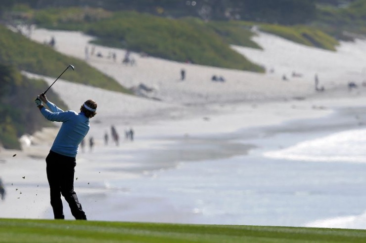 Брандт Снедекер принимает участие в турнире на поле для гольфа в Пеббл-Бич, Калифорния, 10 февраля 2013 года.
