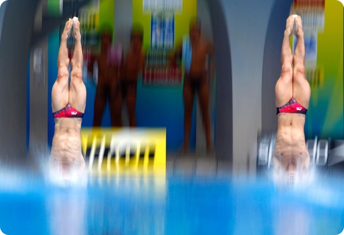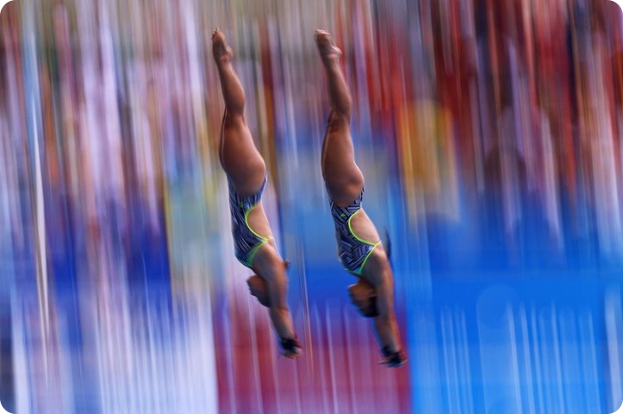 13. Еще одно фантастическое фото прыгунов в финале соревнования по синхронному прыжку с 3-метрового трамплина. (Ezra Shaw/Getty Images)