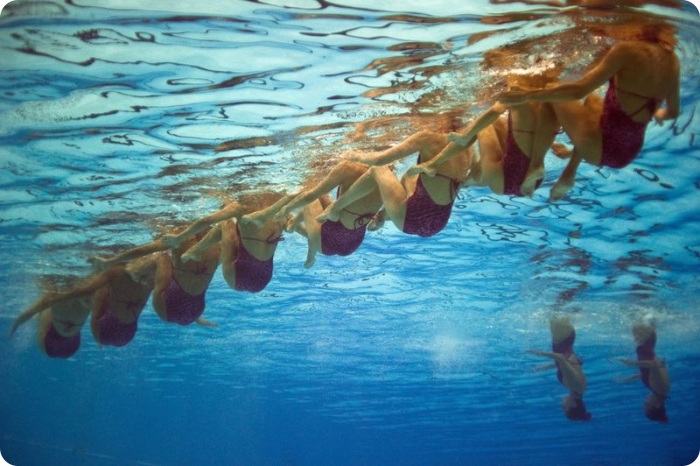 В Шанхае до 31 июля проходит 14-ый Чемпионат мира по плаванию. Пловцы и ныряльщики из 74 стран участвуют в соревнованиях по плаванию, прыжкам с трамплина, водному поло и многих другим. Соревнования по синхронному плаванию – четыре по плаванию и два по синхронным прыжкам с трамплина – особенно живописны и красивы: участники четко повторяют движения тела товарищей, прыгая с трамплина или находясь в воде. Фотографы в Шанхае расположили свои камеры над и под водой, чтобы поймать наиболее красивые и зрелищные фотографии чемпионата.