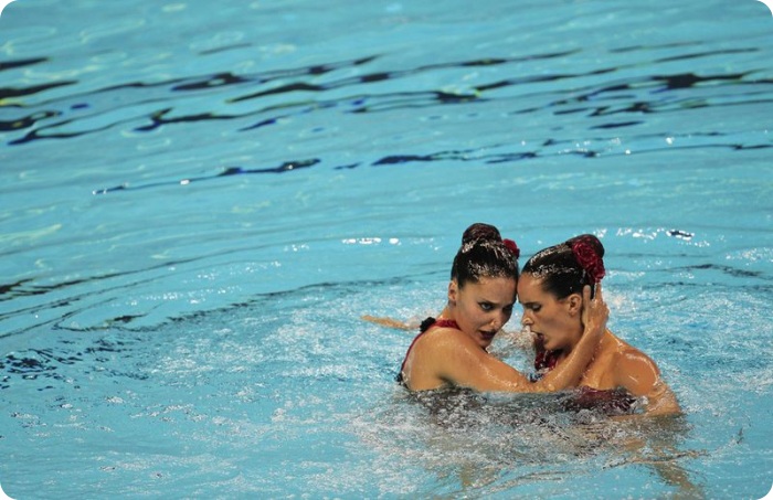 18. Мэри Киллман и Лиса Уоллэс из сборной США во время выступления на соревновании по синхронному плаванию дуэтом. (Reuters/David Gray)