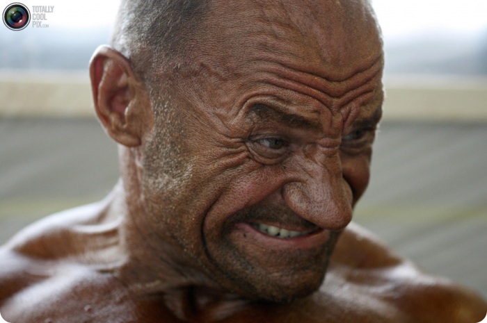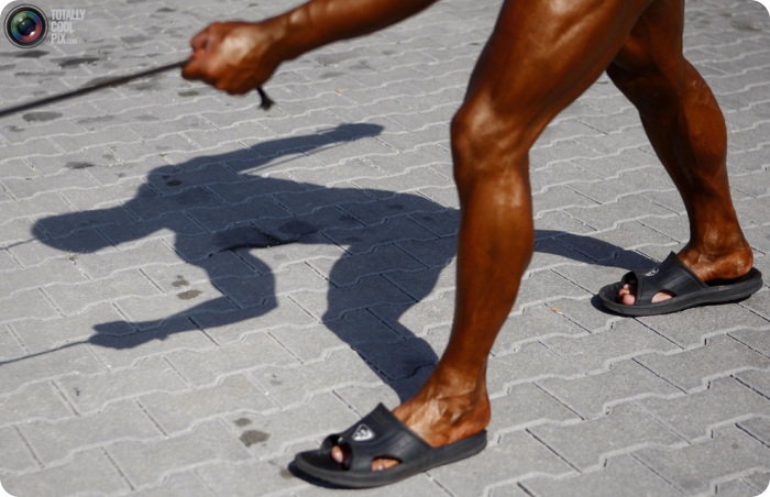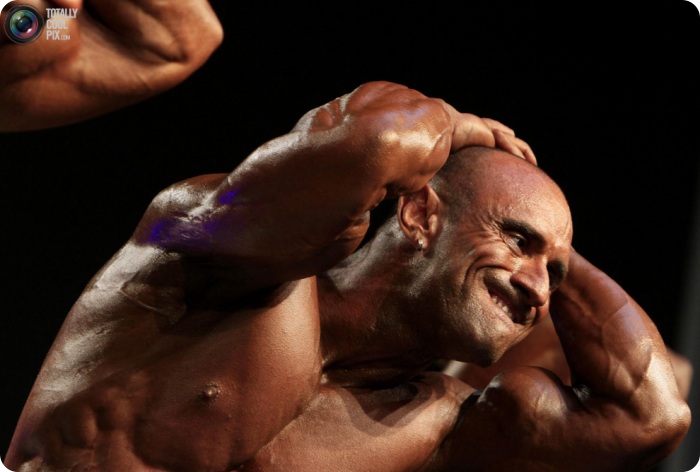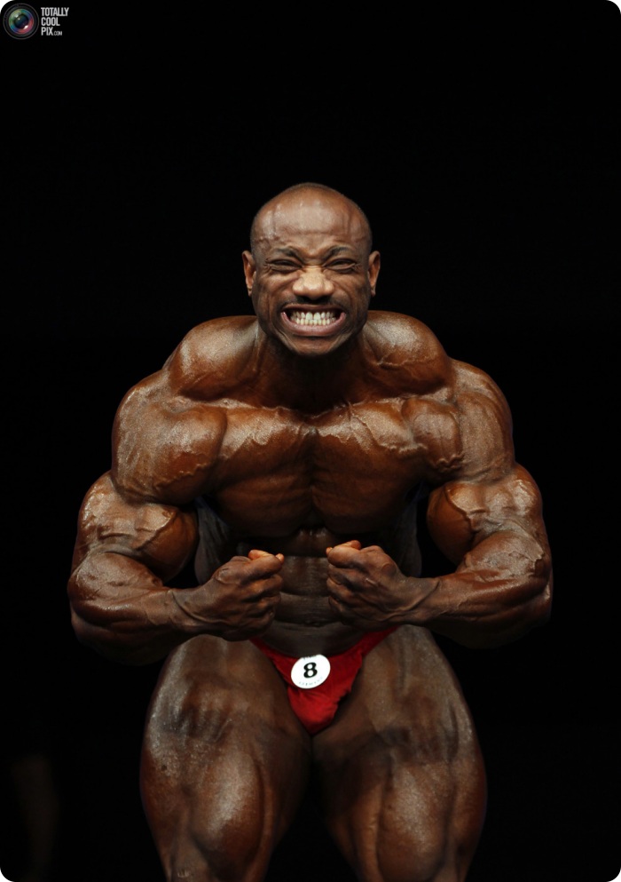 21. Разминка для профессионального бодибилдера так же важна, как и для любого другого спортсмена. Попытка принять необходимую позу без разминки при такой гигантской мускулатуре может закончиться серьезной травмой, так как напряженные стальные мускулы действуют вроде ножниц, и могут повредить нервы.