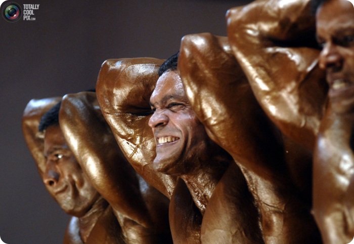 6. Участники Европейского чемпионата по мужскому бодибилдингу, классическому бодибилдингу и культуризму демонстрируют развитость своей мускулатуры. Для этого каждый спортсмен должен принять ряд обязательных поз, напрягая определенные группы мышц.