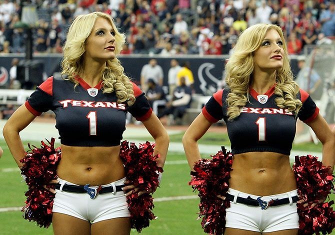 Группа чирлидеров команды «Houston Texans» выступает во время матча своей команды против команды «Pittsburgh Steelers» 2 октября 2011 года на стадионе Reliant Stadium в Хьюстоне, Техас. Техасцы выиграли со счетом 17:10.