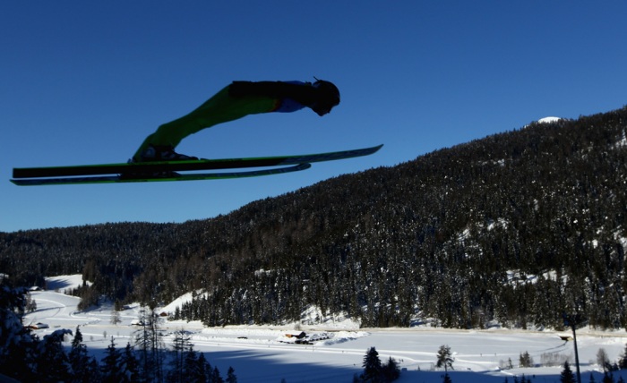 4. Лыжник в полете на тренировке перед соревнованием по прыжкам с трамплина в Зеефельде. (Julian Finney/Getty Images)