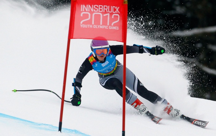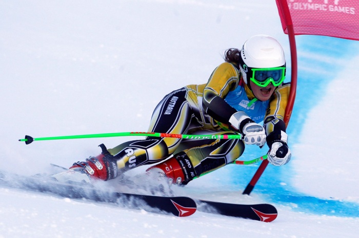 21. Пиера Хадсон из Новой Зеландии в самый разгар соревнования по гигантскому слалому. (Dominic Ebenbichler/Reuters)