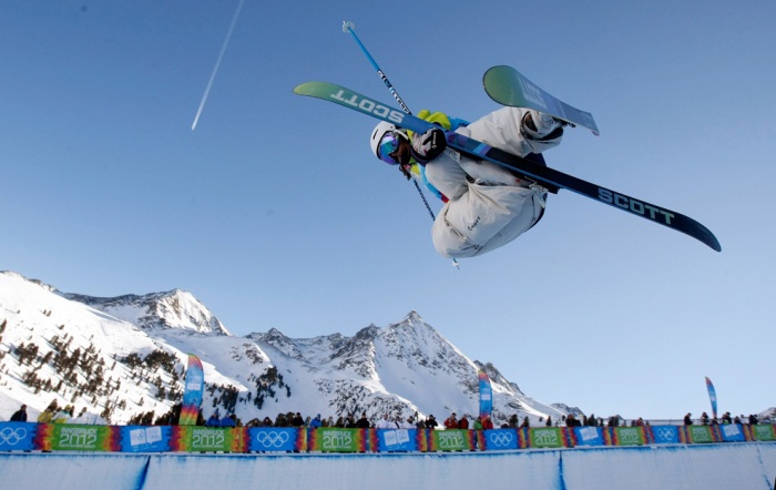 27. Австрийка Элизабет Грэм в прыжке во время финала фристайла по хафпайпу. (Dominic Ebenbichler/Reuters)