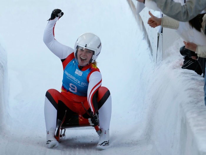 26. Австрийка Мириам Кастлунгер радуется своим показаниям после соревнования по санному спорту среди женщин. (Reuters)