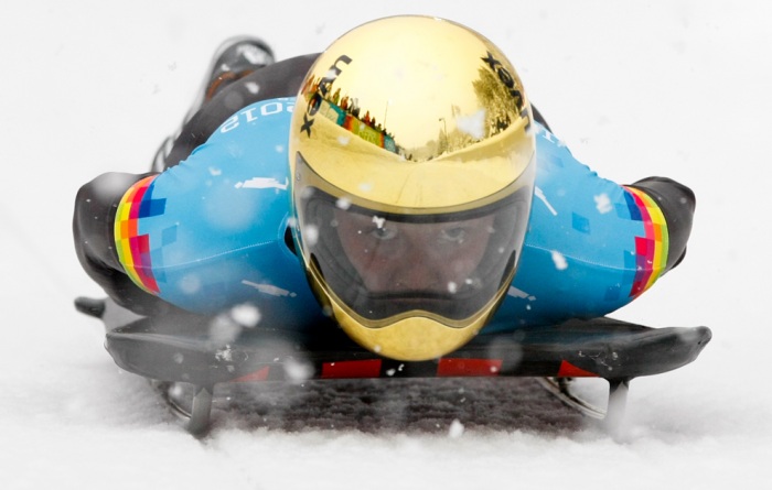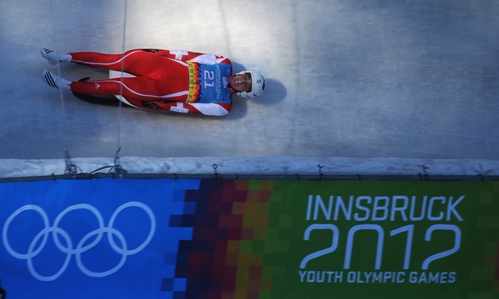 5. Кристиан Мааг из Швейцарии участвует в соревновании по санному виду спорта в Инсбруке. (Samuel Kubani/AFP/Getty Images)