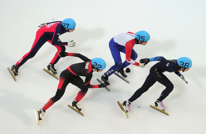 14. Айдин Дьемаль из Великобритании, Сичжень Лу из Китая, Инь-Чен Чан из Тайбэя и Томас Инсук Гонг из США в скоростном забеге на коньках на 500 м в Инсбруке. (Shaun Botterill/Getty Images)