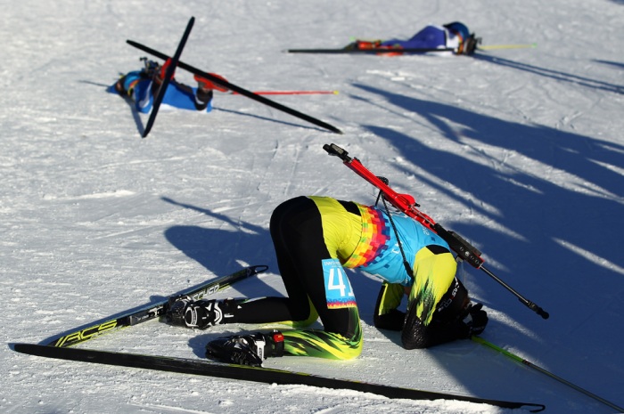 17. Ондрей Козтолани из Словакии и его соперники на земле после 10-километровки. (Julian Finney/Getty Images)