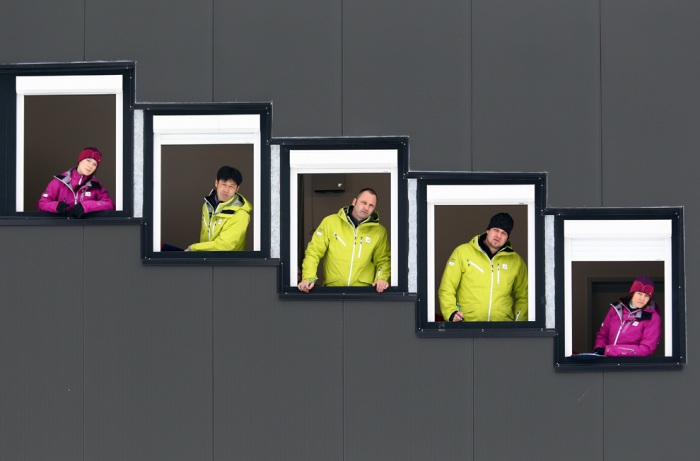 3. Судьи оценивают прыжок на лыжах из своих окон на соревновании в Зеефельде. (Julian Finney/Getty Images)