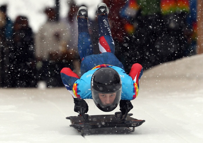 12. Энтони Херрингшоу из США стартует в первом круге соревнования по скелетону в Пачеркофеле. (Julian Finney/Getty Images)