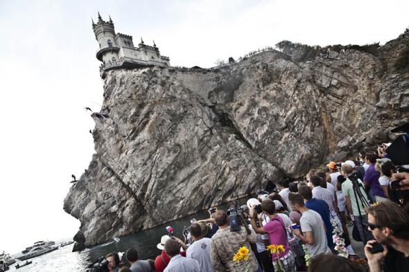 25. Американец Кент Де Монд прыгает с 27-метровой платформы под замком Ласточкино гнездо в Ялте. (© Ray Demski / Red Bull Cliff Diving)